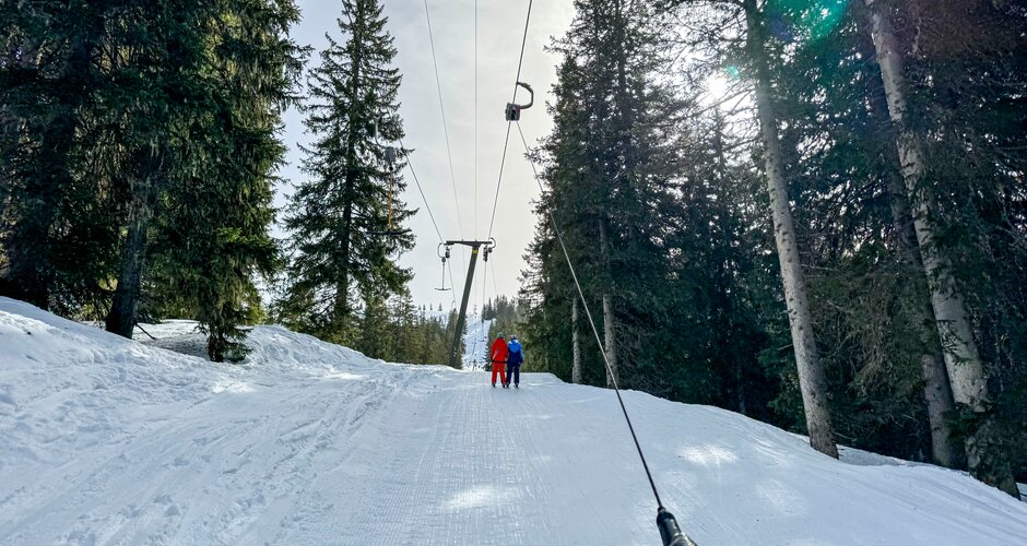 Naturgenießer kommen hier auch sonst auf ihre Kosten: Im gesamten Gebiet gibt es nur Naturschnee oder „Bioschnee“, wie man ihn hier nennt. Wenn genügend Schnee da ist, werden die Lifte angeschaltet, ansonsten stehen sie still. Genauso verhält es sich auch mit dem Snowpark Livingroom Hochkeil, neben dem nächsten Lift, dem Arthurhauslift. Interessantes Detail über die Lifte: Niemand fährt hier Gondel… die Einzige, die es gibt, steht nämlich am Boden nahe dem Gipfelkreuz am Hochkeil. Stattdessen gibt es drei Schlepplifte (zwei davon eher länger), einen Tellerlift und einen Anfänger-Bügellift.