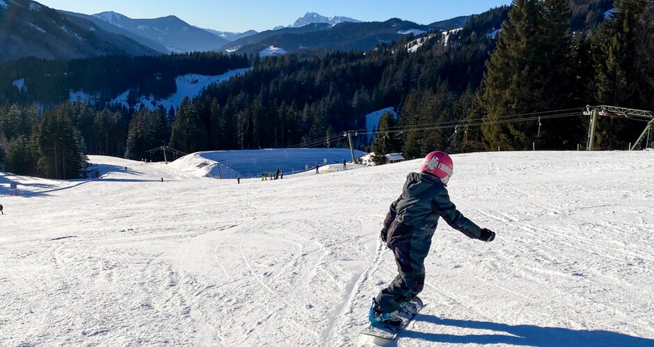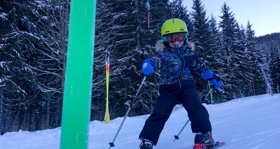 Treffen an der Talstation und Kostümwechsel: Papa und Sohn tauschen Langlauf- gegen Alpinski, Tochter tauscht Ski gegen Snowboard. Kaum sind alle fertig geht’s auch schon ab zum Tellerlift. Dort übt die Große ihre Snowboard-Schwünge und der Kleine flitzt durch Tore, über Wellen und kleine Hindernisse und perfektioniert sein Rennfahr- respektive Freestyle-Können. Allerdings alles ganz entspannt und ohne Adrenalin-Kick und Puls 180 für die Eltern. :)