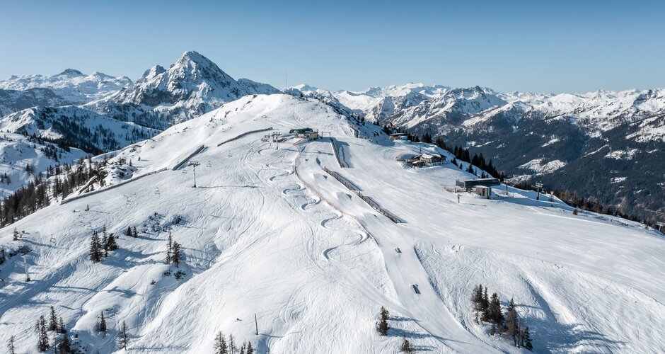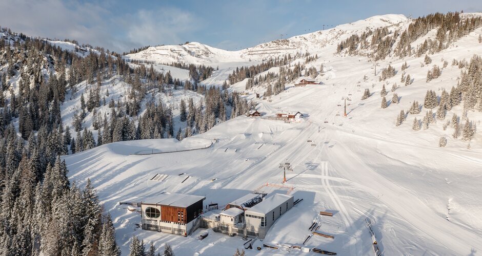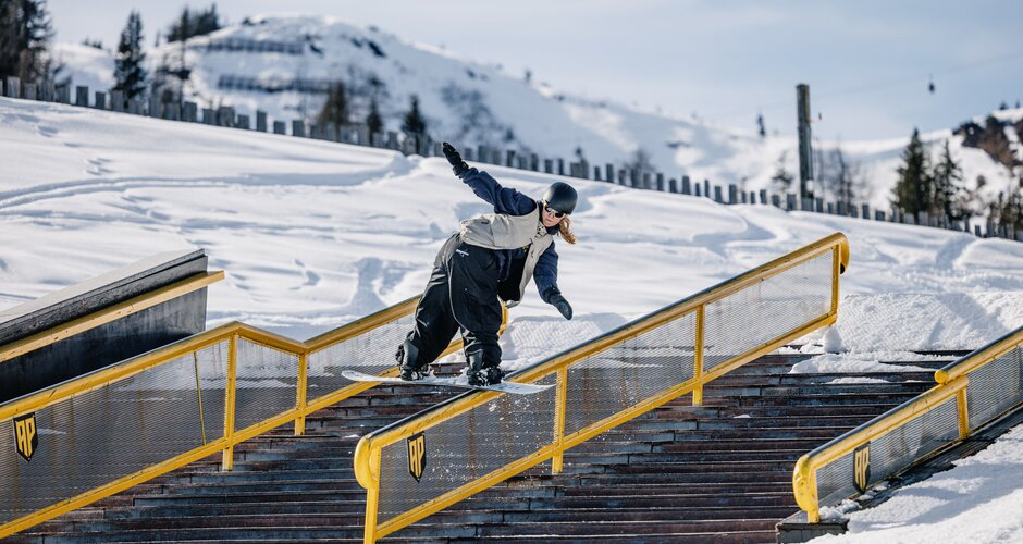 5 Kicker in einer Line ermöglichen maximale Airtime auf internationalen Top-Niveau. Hier findet mit dem Spring Battle der bekannteste on mountain Snowboard Contest Österreichs statt.