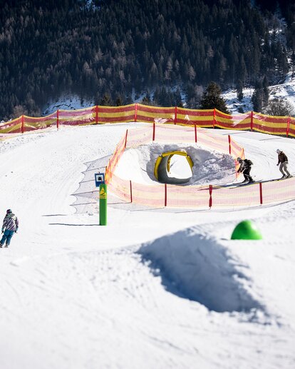 Die Snowboardlehrerin Julia Walk von der Blue Tomato Snowboardschule berichtet: „Speziell den jüngeren Schülern gefällt die Funslope. Deswegen binden wir sie auch sehr stark in den Unterricht mit ein. Dort können die Kids schon mal erste Erfahrungen sammeln, indem sie gerade aus über kleinere Boxen rutschen, womit das Grundgefühl für die verschiedenen Elemente leicht erlernt wird.“