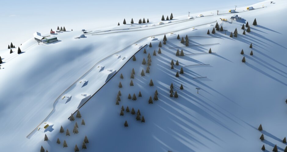 Der Start vom Snowpark ist unmittelbar talseitig der Sonnenbahn Bergstation.