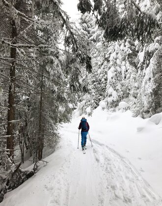 Ausgangspunkt dieser Skitour ist die Mittelstation der Gipfelbahn-Fulseck. Die Auffahrt mit der Gipfelbahn-Fulseck I ist im Preis des Skitourentickets enthalten. Von der Mittelstation aus geht man entlang der Piste bis zum Einstieg des Schneeschuhtrails. Durch den verschneiten Winterwald gelangt man zur Heumoosalm (im Winter nicht bewirtschaftet). Von dort erfolgt der Anstieg zur Arltörlkapelle. Bergauf geht es weiter in Richtung des Kieserls. Von dort erspäht man bereits das Ziel, die Bergstation Gipfelbahn-Fulseck. |