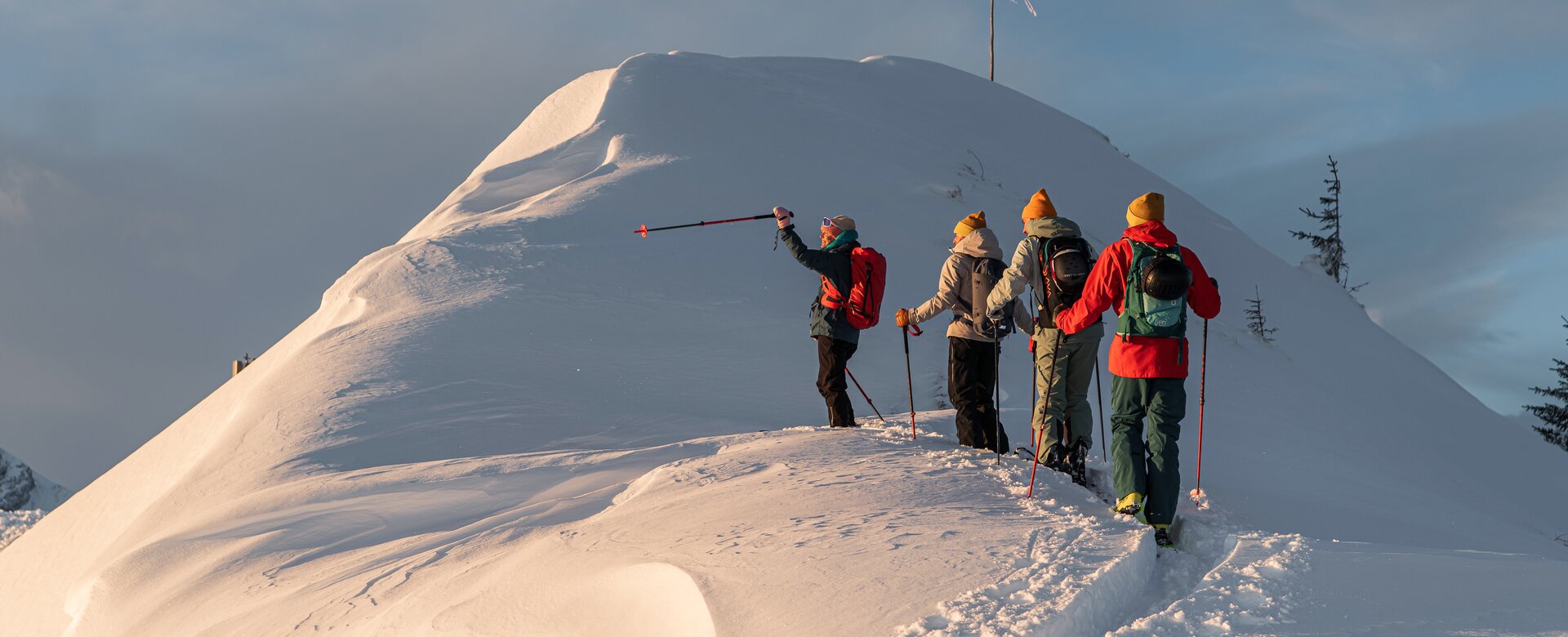 Die Pistentourengeher-Route ist mit Tafeln markiert – bitte beachten Sie das Leitsystem und folgen Sie der ausgeschilderten Route.