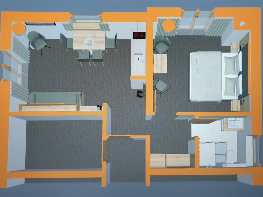 Generous, furnished terrace overlooking the newly designed garden or balcony.Room/apartment features