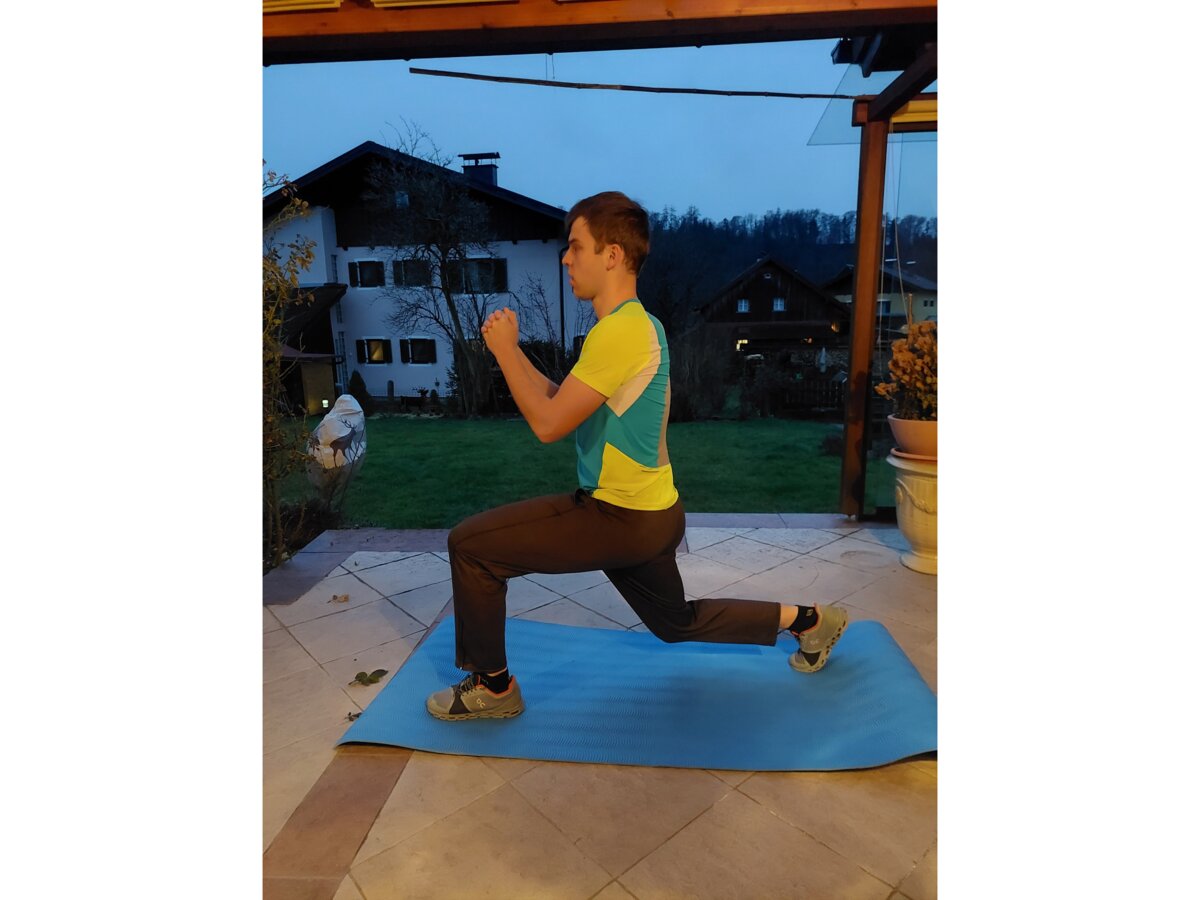 Sometimes when skiing you have to react quickly, or a bump comes your way and you make an unexpected jump. So I also recommend training quick stop movements – like in soccer. Just run forward and quickly stop with one foot and run back again. This will strengthen your ligaments, but always be careful!