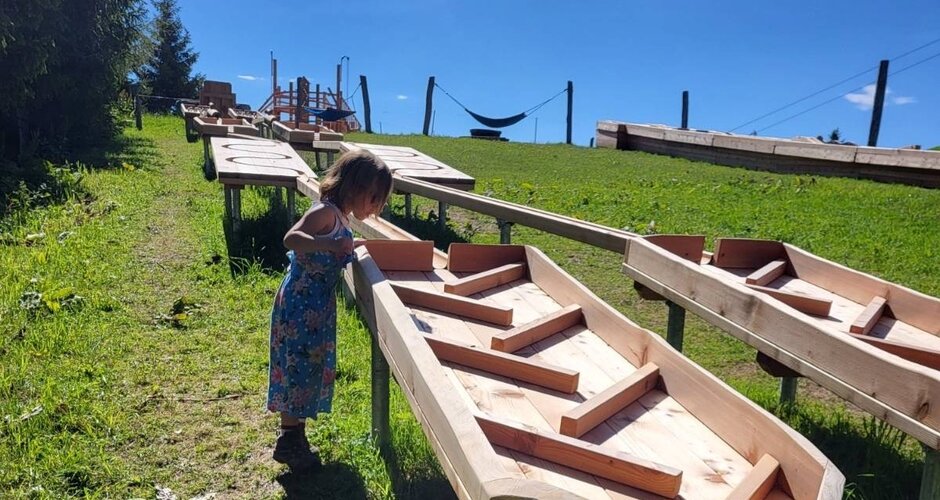 The second, new circular trail leads down from the mountain station and lets us discover one of the longest marble run hiking trails in the Alps. The 2-kilometre-long trail offers countless marble run stations, which impress with many details and offer a fun mountain experience for all members of the family. Even the most unmotivated kids will be spurred on to keep going, discover the next station and finally complete the trail.