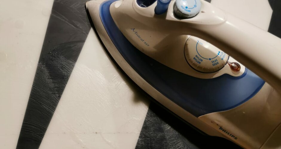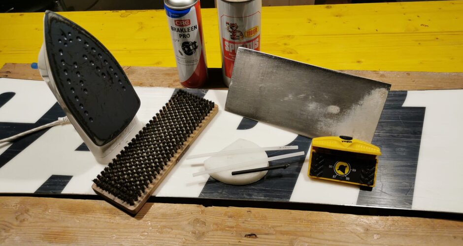 If you look closely at your board afterwards, you will notice that it has some scratches and in worst case some deep nicks. That's where the wax comes in, with which we repair these with. It's best to use an all-round snowboard wax. You can find this wax most reliably in sports and ski shops, and it should cost about 20 euros. In my case it smells like raspberries :) Then heat an iron until it can easily melt the wax so that it drips onto the board. Make sure you cover all the nicks and scratches. There should also be enough wax to rub wax all over the surface. Reduce the heat of the iron and start spreading the wax. When you are done, let it cool completely. Half an hour should be enough.