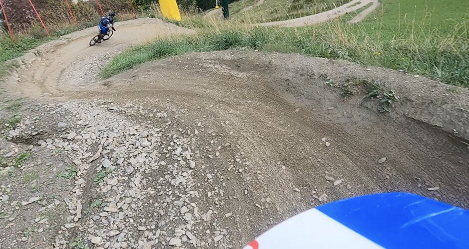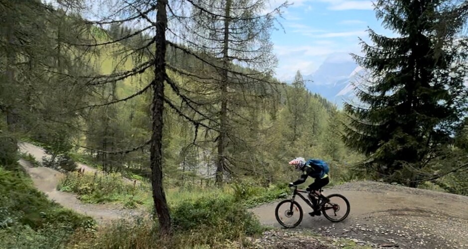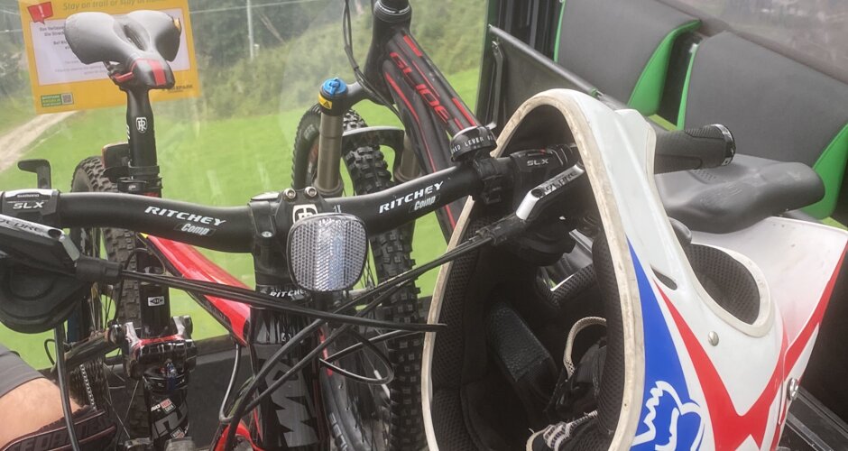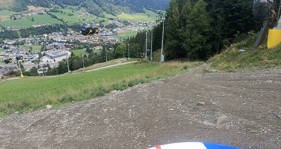 We quickly pick up our day ticket at the ticket office and are already in the gondola for the first ascent. We decide to start with the blue trail to slowly feel our way up. And it really knocks our socks off. Perfectly shaped, no deep potholes, fast steep bends and lots of small and slightly larger ramps invite you to step on the gas. You don't have to take off on the ramps, but you easily can. A descent is 15 kilometres long and as a learner you can really feel it in your arms and hands. We loved the route so much that we had to do it twice more. We needed about an hour for one lap (ascent and descent).