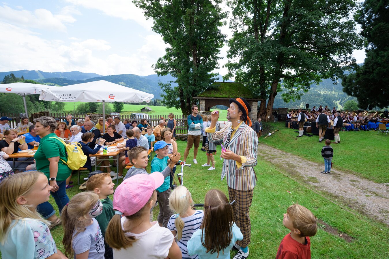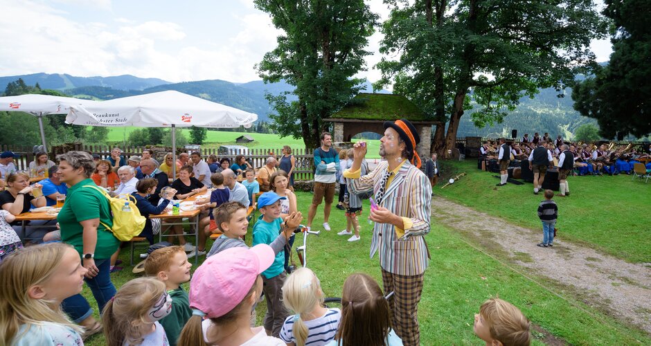 The event features musical entertainment provided by the Flachau Traditional Music Band and the Badhäusl Musi, complemented by an extensive children’s programme with jugglers, stilt walkers and other attractions.