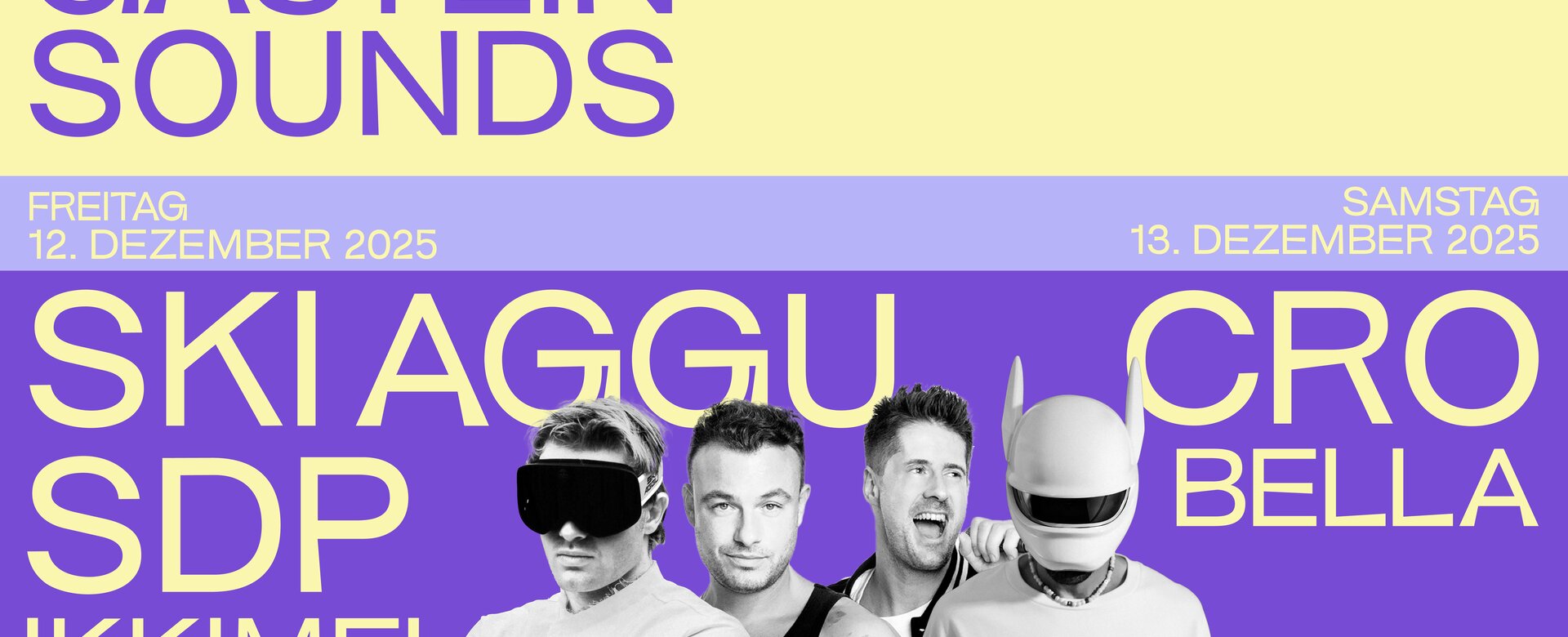 When things heat up at almost 1,000 metres above sea level in the middle of December amid the impressive winter mountain panorama of the Gastein Valley, it can only mean one thing: the premiere of GASTEIN SOUNDS is coming up. The new winter open-air festival will take place for the first time on 12 and 13 December 2025 in Bad Hofgastein – CRO, SKI AGGU, SDP, IKKIMEL and BELLA will provide the fat beats to kick things off.
