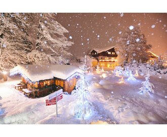 Our large garden is located in the center of Altenmarkt and is set up like a park. Our area comprises 3 houses: a wellness house, our country house, the main house with restaurant and a rustic alpine hut in the center.