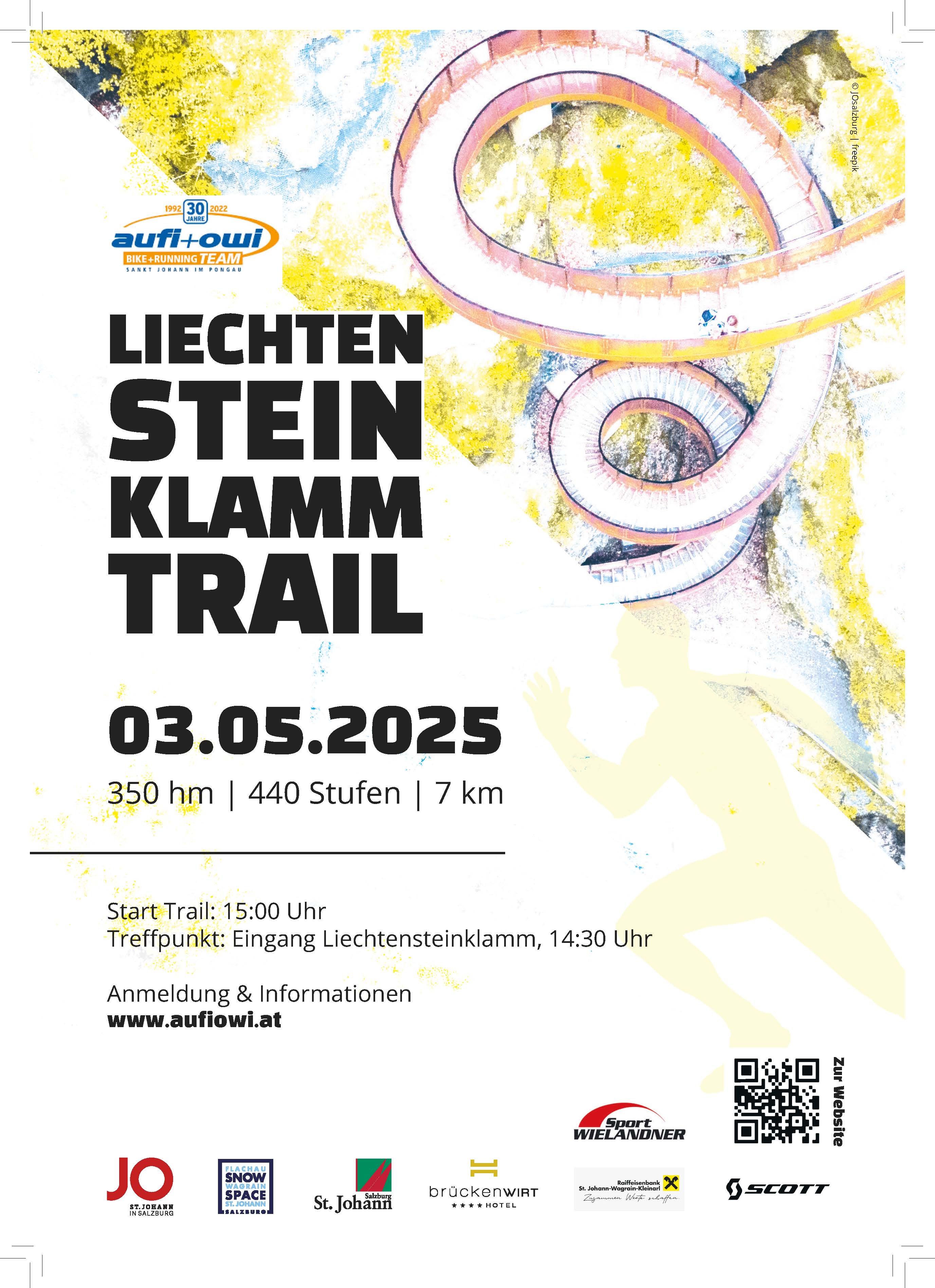 St. Johann ist bekannt für die seit 150 Jahren erschlossene Liechtensteinklamm mit 4 km Länge (davon 1 km begehbar) mit Schluchten von bis zu 300m Tiefe. Perfekt für einen Trailrun. Wir wollen einen Saisonstart für Jedermann, nach dem Motto „Erlebnis statt Ergebnis“. Trailrunning in der größten und imposantesten Klamm der Alpen.