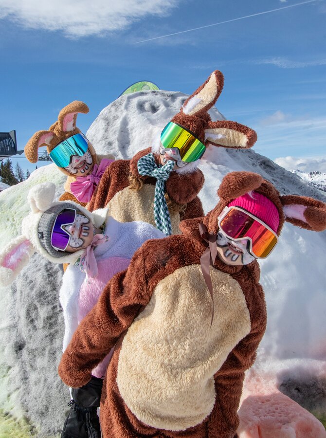 Bei der Osterhasen Party schnallen sich lebensgroße Hasen Ski und Boards an, zudem organisieren wir eine Osternestsuche, eine spannende Rätselrallye, riesige Schneefiguren und eine Überraschung für alle Kids
