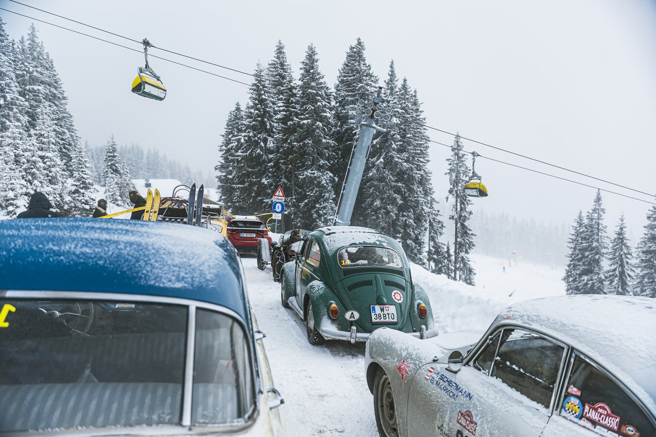 Als noch keine Rede von E-Mobilität war, das Tankstellen-Netz noch schütter war, ein Käfer nach 2.500 Kilometern Öl wechseln musste, Starrachsen wenig Komfort boten, keine Halogenlampen die Straßen aufhellten, Getriebe nach Zwischengas winselten und Verkehrsstaus ausblieben, war das Winterfahren noch eine besondere Kunst, die bei der Planai-Classic bewahrt wird.