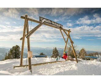 "Speed out, enjoyment in!" At the highest point of the Fageralm, the "Goliath Genuss-Oase" with giant swing and giant lounger invites you to linger in pleasure. The magnificent panoramic views of the surrounding mountains are unique.