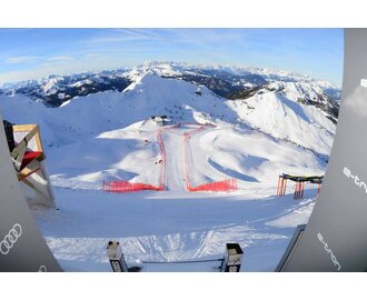 With the elevator "World Cup Express", which is located directly next to the top station of the Schwarzwandbahn, you go up to the Gamskogel. Here is not only the start of the spectacular World Cup slope, but also a fabulously beautiful vantage point. The highest excursion point in the "Salzburger Sportwelt", which can be reached by lift, is thanks to the World Cup final in 2002, when the downhill course was extended to include the steep starting slope on the Gamskogel. The World Cup Express is usually open in fair weather during the main season (except during race preparation and World Cup races).