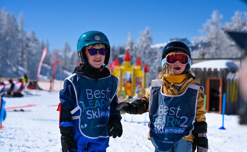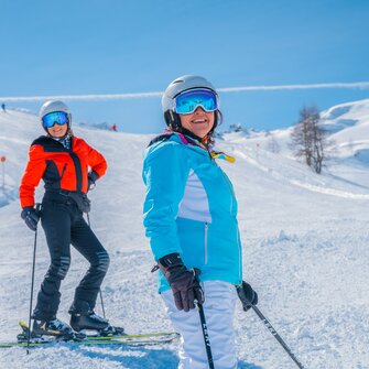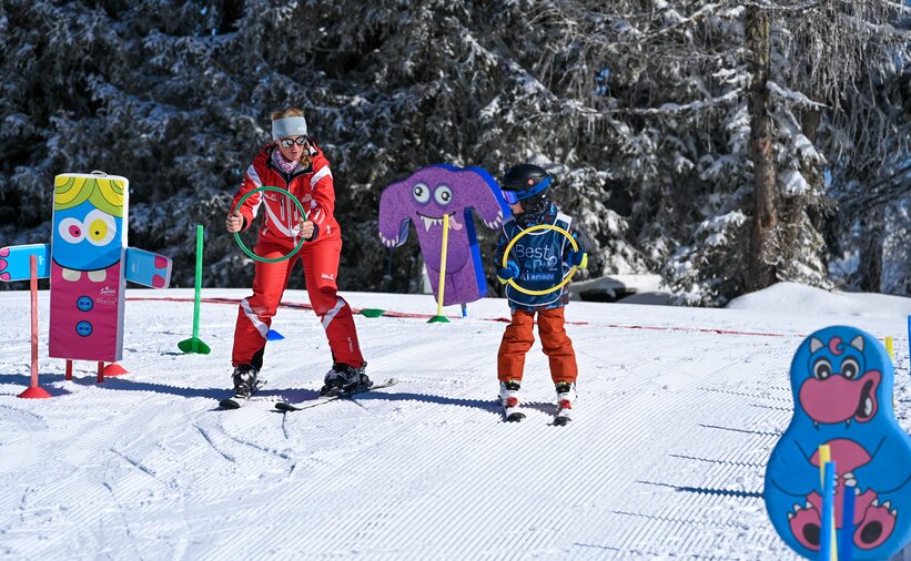 While the "Bambini" and "Juniors" learn skiing from the ground up with lots of fun, the motto for teens (from 12 years old) is "No Limits." Without their parents and guided by cool coaches, the focus is not only on classic slope enjoyment but also on learning new techniques and terrains. This might include tackling a mogul slope, trying out a jump, or experimenting with an avalanche transceiver. In addition, courses are offered for adults who are beginners or returning to skiing (Learn2Ski and Back2Ski), as well as for seniors (Best Agers on Skis) who enjoy skiing together and recreational skiing. The main goal for all courses: Every ski beginner will be thrilled with the fun on the slopes by the end.