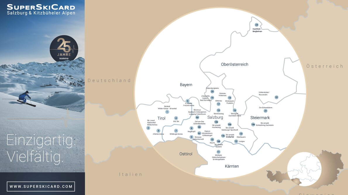 - Gültig in 23 Skiregionen im SalzburgerLand, Tirol, Kärnten, Oberösterreich und der Steiermark